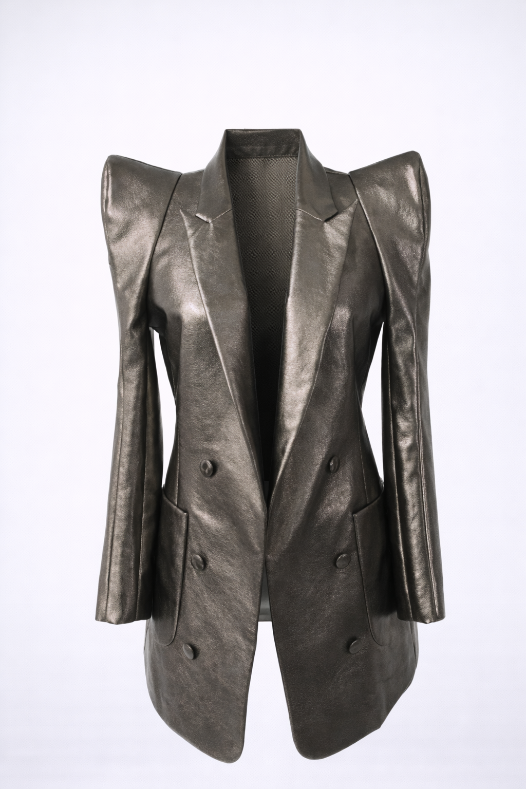 Give him a little Shoulder and take it right back in our exaggerated Shoulder Blazer. Featuring bold shoulder pads on supple vegan material. Our boldest; yet timeless statement piece to date.
